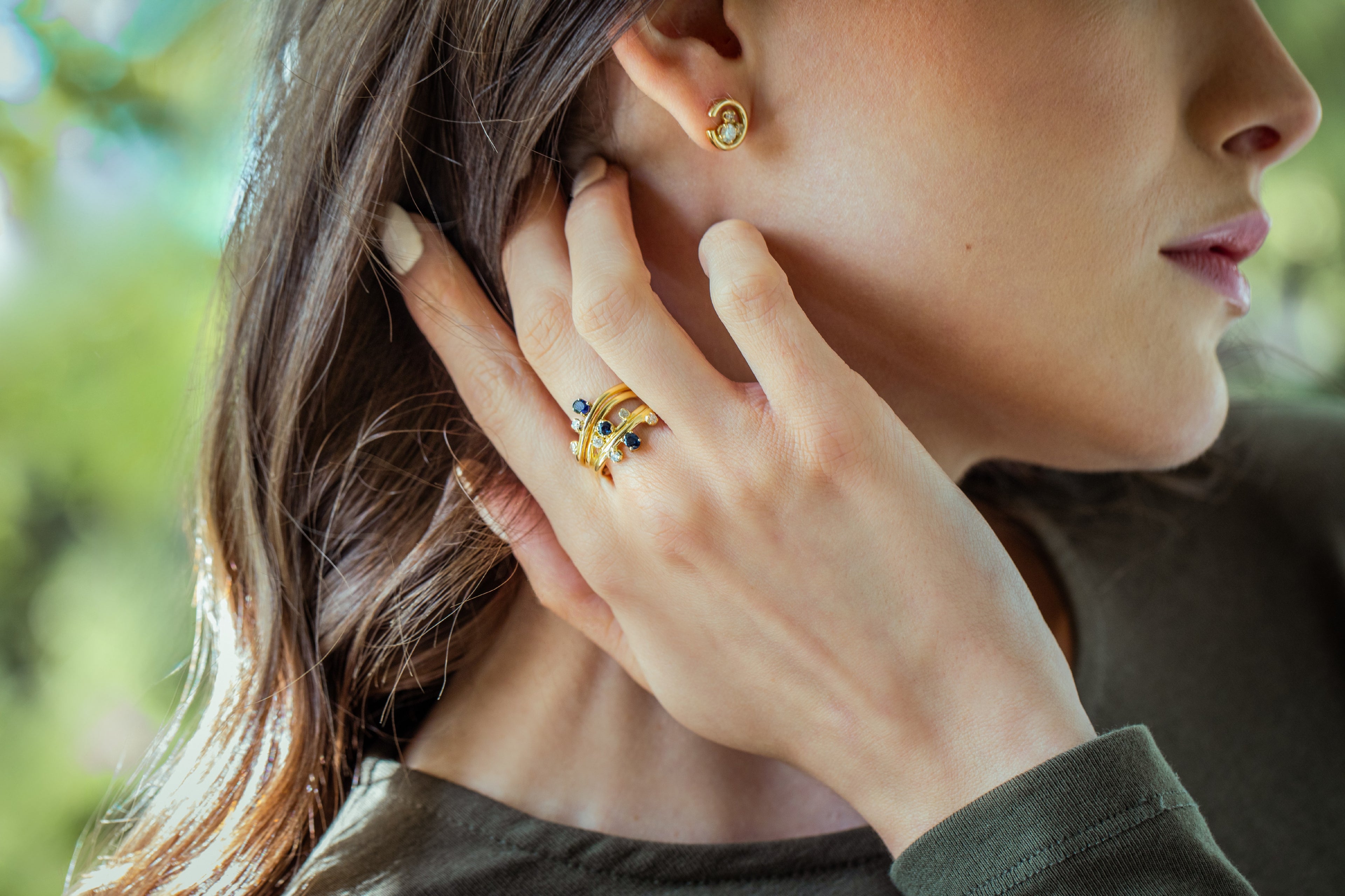 Des créations uniques façonnées artisanalement en France à partir d’or recyclé et gemmes de seconde main.