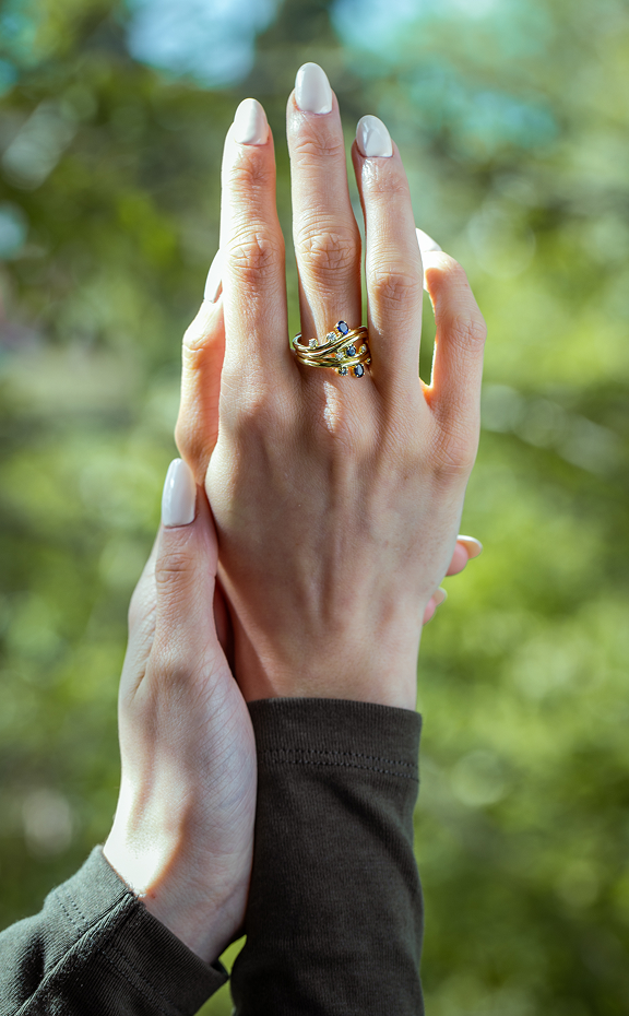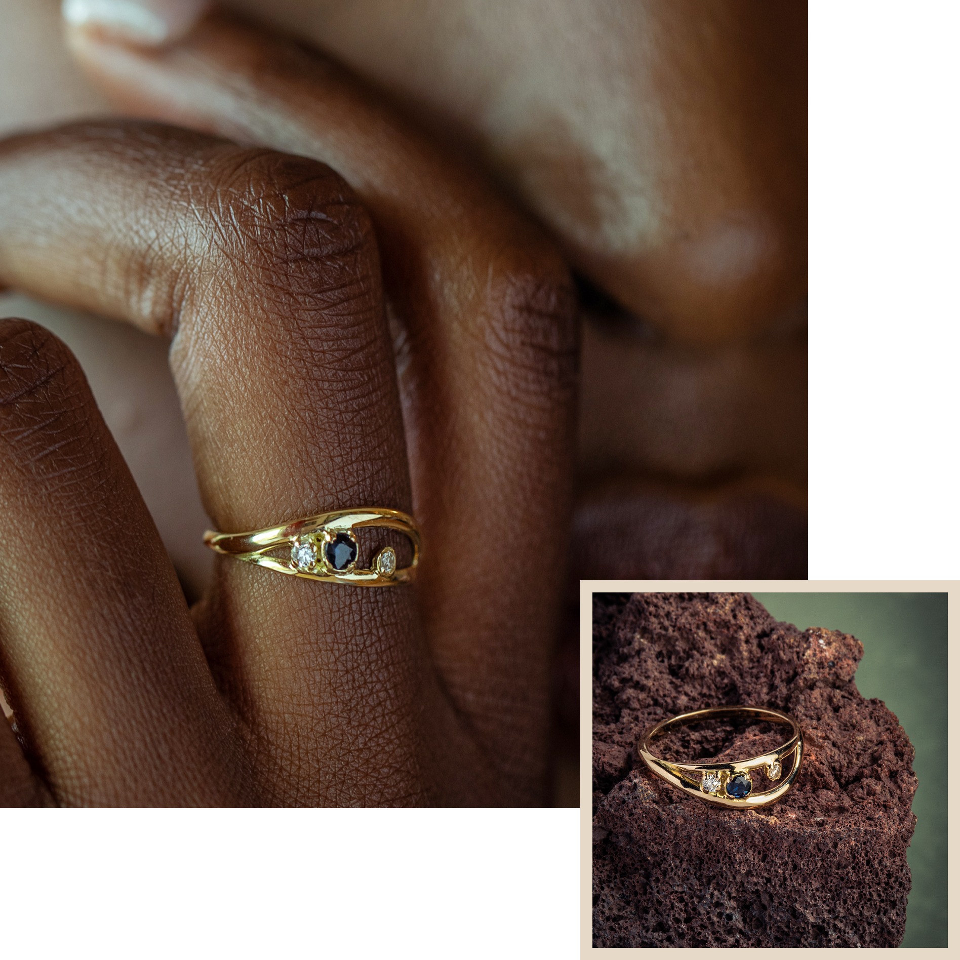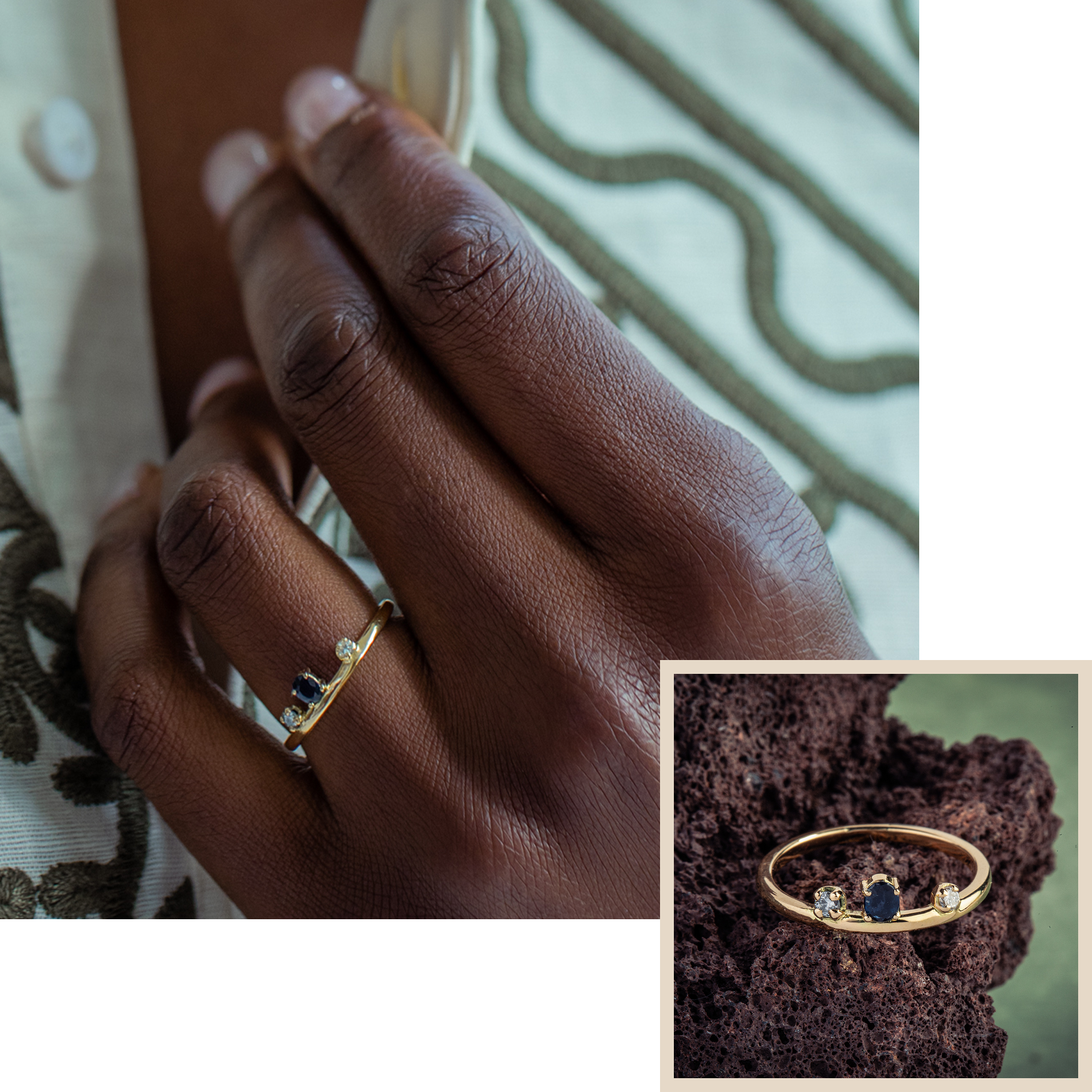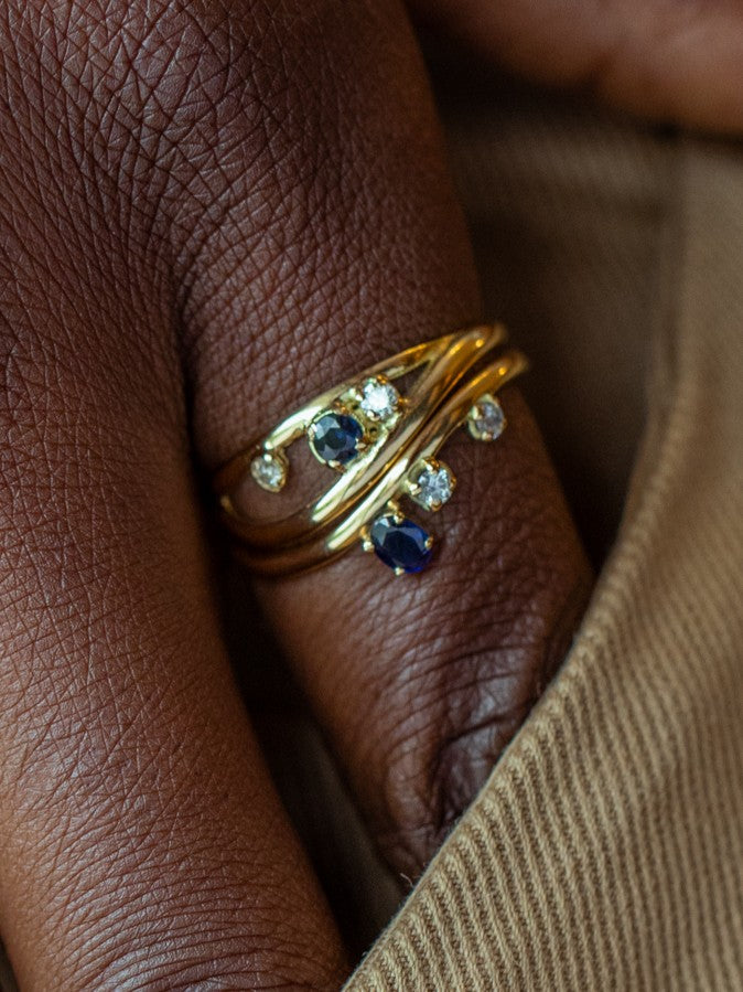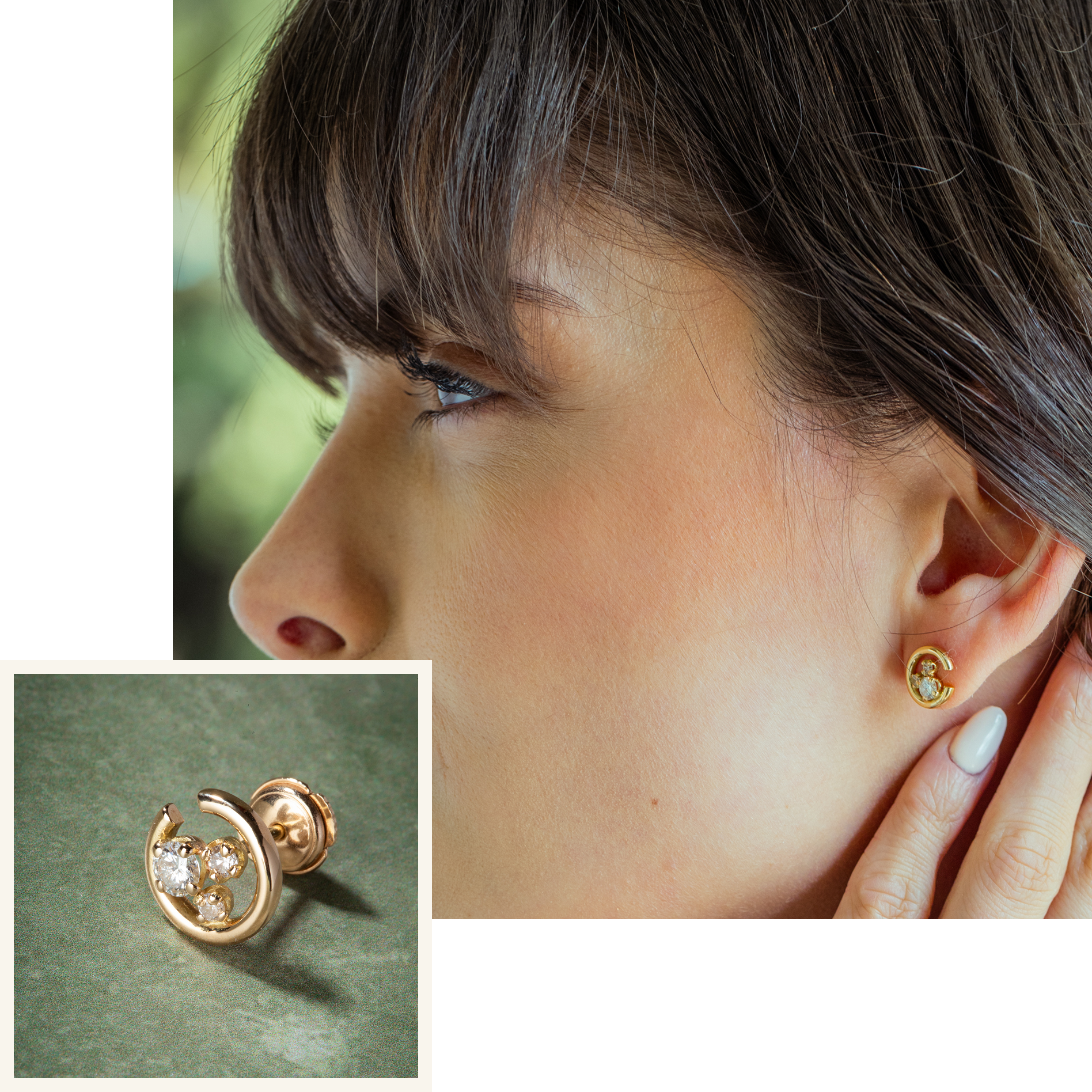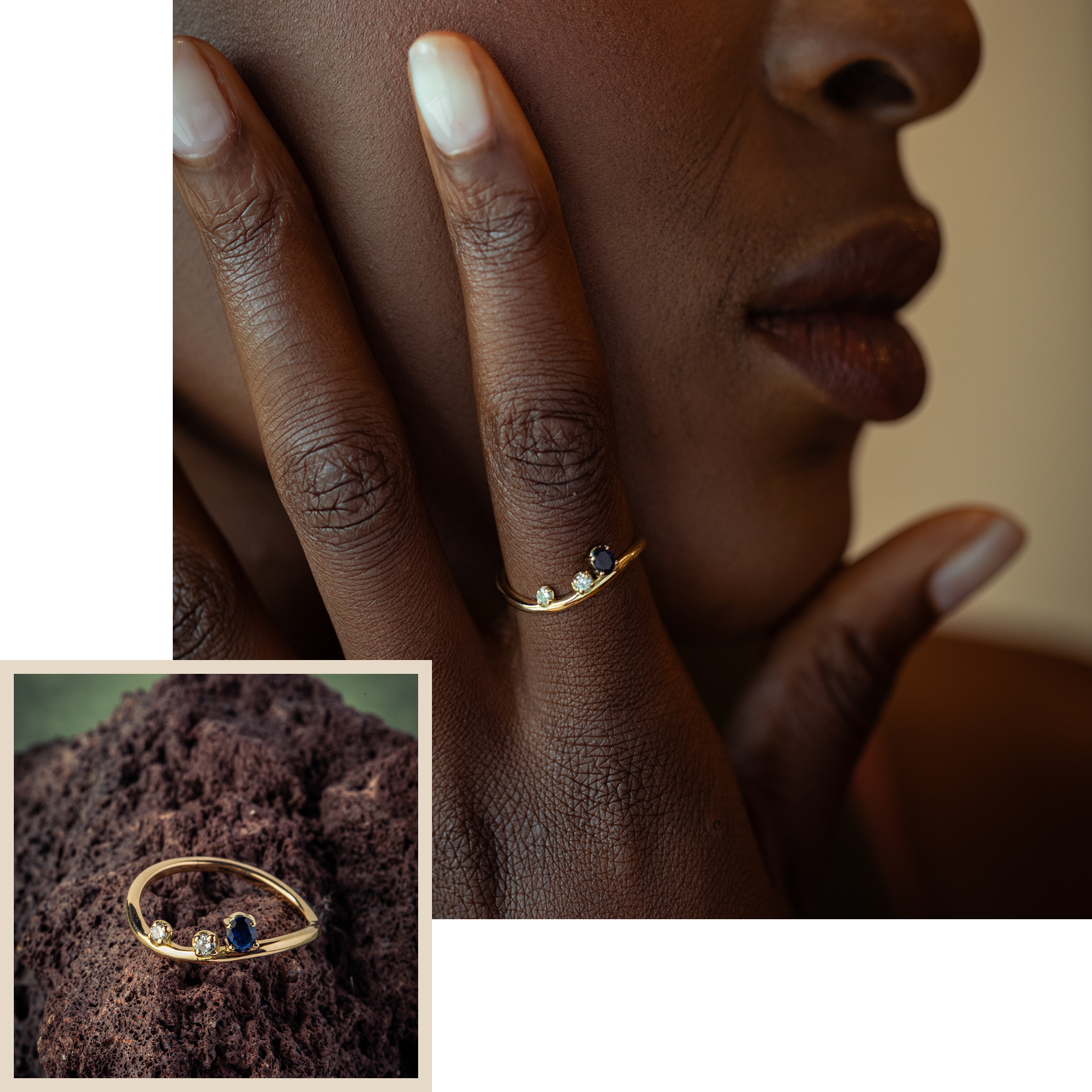 Chaque bijou est façonné à la main en France, à partir d’or 18k recyclé et de pierres précieuses de seconde main, soigneusement sélectionnées.